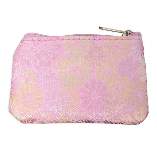 Pink Tapestry Fabric Rosary Pouch with Gold Flowers and Zipper Opening . 3" x 4".