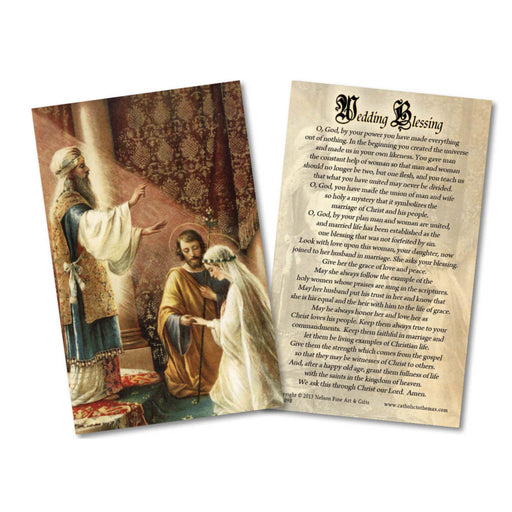 Share your faith with this beautiful holy card! The 2.5"x4.25" holy card features a classic image of the Wedding of Joseph and Mary Wedding Blessin...