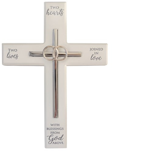 View full detailsWEDDING CROSS - WHITE WITH METAL INLAY AND RINGS