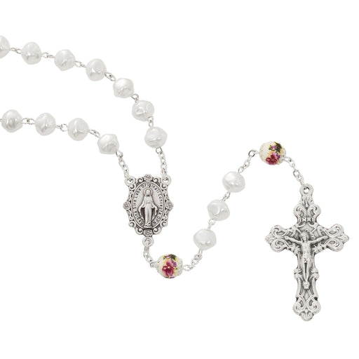 View full details8MM PEARL BEADS WITH CAPPED CERAMIC FLOWER O.F. BEADS. SILVER OX CRUCIFIX AND CENTER. MADE IN ITALY AND DELUXE GIFT BOXEDDIMENSION: 22"