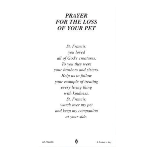 Prayer on back: "St. Francis, you loved all of God's creatures. To you they were your brothers and sisters. Help us to follow your example of treat...