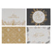 Wish friends and family a Merry Christmas when you send a card from the Merry Christmas Golden Pine Branch Boxed Card Set. The card set includes four designs. The white background of the first card has a black and gold pine branch border and a golden sentiment. Silent night Holy night The second card has a golden wheat background with a white geometric diamond pattern. Each diamond features a white pine branch motif, and the center diamond showcases the white-lettered sentiment. Joy to the World The third card has a matte charcoal gray background that features a round white frame outlined in gold. Golden pine branches illuminate the frame. Joy to the World The last card in the set has a white background and is decorated with golden winter botanical illustrations at its base. The sentiment is displayed in golden letters above it. Merry Christmas The cards are paired with white envelopes with a small golden pine branch on the front. The set is packaged in a charcoal gray gift box with a die-cut window displaying the first card. The set includes 12 cards, 3 each of 4 designs, and 12 envelopes. All the cards are blank on the inside, so you can add your own message. The Merry Christmas Golden Pine Branch Boxed Card Set is part of the Peace on Earth Shimmer Collection. This is an extensive collection that includes a scented candle in a ceramic mug, a ceramic Christmas ornament, a boxed card set, a gift tag set, a ceramic plate, two paper napkin sets, a scented candle in a glass jar, a resin stocking holder, a gift tin, a gift bag, a reusable shopping tote bag, and a wrapping paper set. Show loved ones and cherished friends that you are thinking about them this Christmas season when you send Christmas wishes with the Merry Christmas Golden Pine Branch Boxed Card Set. Each card is designed to convey warmth and festive cheer, perfect for letting your friends and family know just how much they mean to you this festive season. Golden Pine branch theme Black, gray, gold, and white colors Gold and white sentiments Silent Night Holy Night, Joy to the World, Merry Christmas Peace on Earth Shimmer Collection 12 cards 3 each of 4 designs Blank insides 12 white envelopes with golden branch design Gift box with window Card Size: 5" x 3.5" (127 x 89mm) Box size: 5.4" x 3.8" x 1"