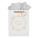 The white gift bag's front and back panels are adorned with delicate gold and silver-foiled pine branch wreaths. The gold-foiled sentiment is centered in the wreath.
