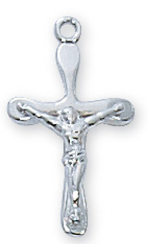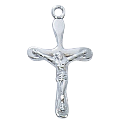 STERLING SILVER CRUCIFIX INCLUDES 13" RHODIUM PLATED CHAIN AND DELUXE GIFT BOXDIMENSION: 5/8"