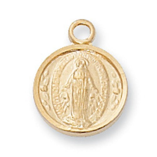 GOLD OVER STERLING SILVER MIRACULOUS MEDAL, INCLUDES 16" GOLD PLATED CHAIN, DELUXE GIFT BOX INCLUDED DIMENSION: 1/2" LONG