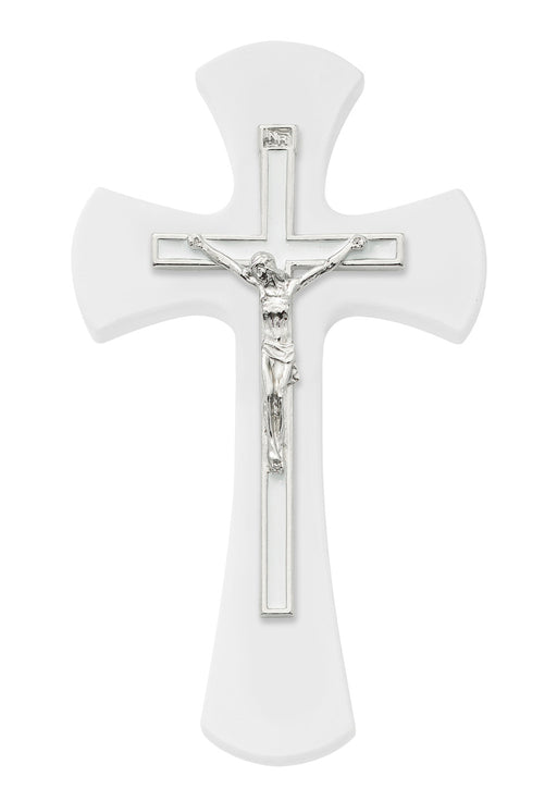 7" WHITE WOOD WITH WHITE EPOXY CRUCIFIX, COMES IN A DELUXE GIFT BOX. MADE IN USA.