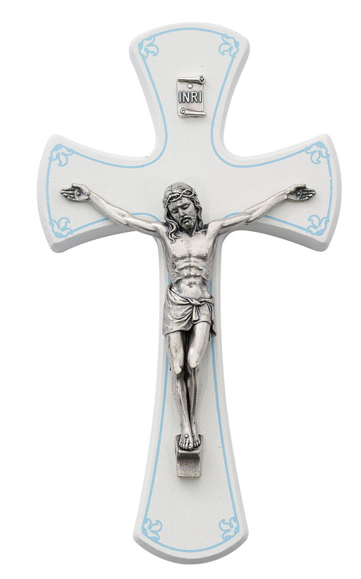Wall Crucifix 7" White with Blue Enamel Inlay