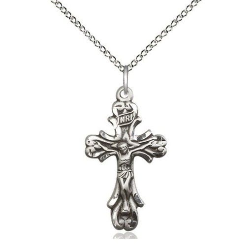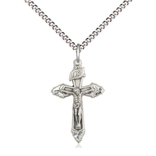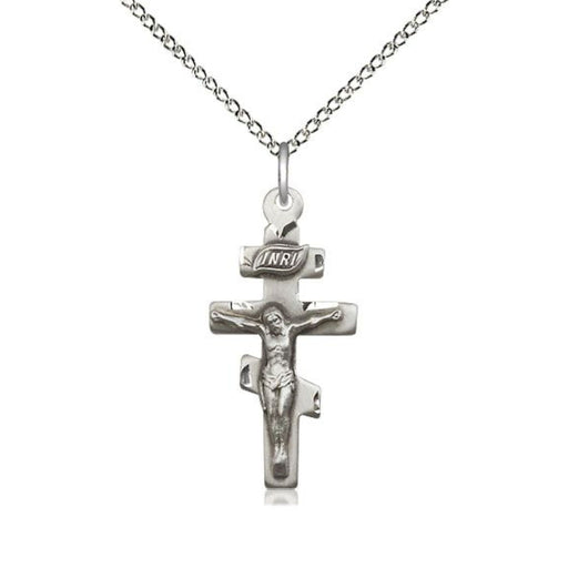 View full detailsCrucifix Medal. Medal Measures 1-inch tall by 1/2-inch wide. Chain is 18 Inches in length Sterling Silver Light Curb Chain with Lobster Claw Clasp.