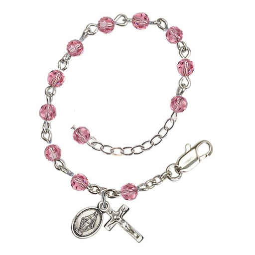 View full detailsHandmade Silver Plated Rosary bracelet with 4mm round rose color Austrian Crystal beads Silver Plate Miraculous Medal is 3/8-inch by 1/4-inch Silv...