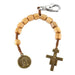 Franciscan One Decade Rosary Olive Wood 10mm Beads on Brown Cord Backpack Clip with Antique Bronze Finish Saint Francis Medal and Crucifix .9"