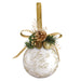 A miniature pine cone bouquet is attached to the gold cap at the top of the baule. A gold ribbon hanger makes displaying the bauble on your tree easy. With its coordinating gift box, it becomes a cute gift idea.