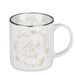 The white ceramic mug is adorned with a gold-foiled pine branch wreath that frames the gold-foiled sentiment.